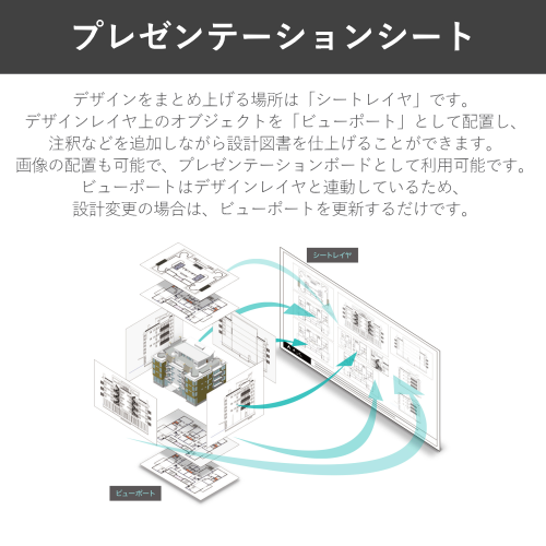 2D/3D汎用作図機能に、プレゼンボード作成機能や図面と連動できる表計算機能など