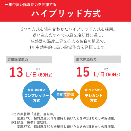 【定格除湿能力(50Hz/60Hz)】12/13 L/日
