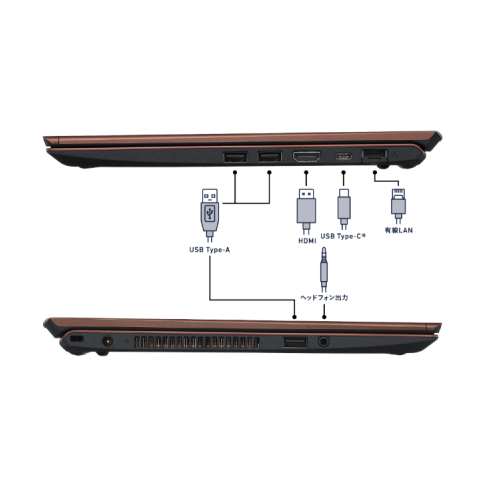 (WUXGA)、アンチグレア表示解像度 1920×1200 カメラ HDカメラ Windows Hello 顔認証対応、92万画素 オーディオ 内蔵ステレオスピーカー 通信機能 1000BASE-T/100BASE-TX/10BASE-T×1、Wi-Fi 6E(IEEE802.11 a/b/g/n/ac/ax準拠)、Bluetooth5.3 インターフェース USB 5Gbps(USB 3.0)port×3、USB Type-C×1(以下の機能をサポート USB Power Delivery、USB 3.1、DisplayPort 1.4)、LAN端子×1、HDMI端子×1、ヘッドセット対応ヘッドホン端子×1 セキュリティチップ 搭載 (TCG ver.2.0準拠) リカバリ Officeソフト 非搭載 寸法 約幅299.3mm×高さ17.7~19.6mm×奥行221.1mm 重量 約1.072kg~1.084kg バッテリー駆動時間 動画再生時約8.0時間