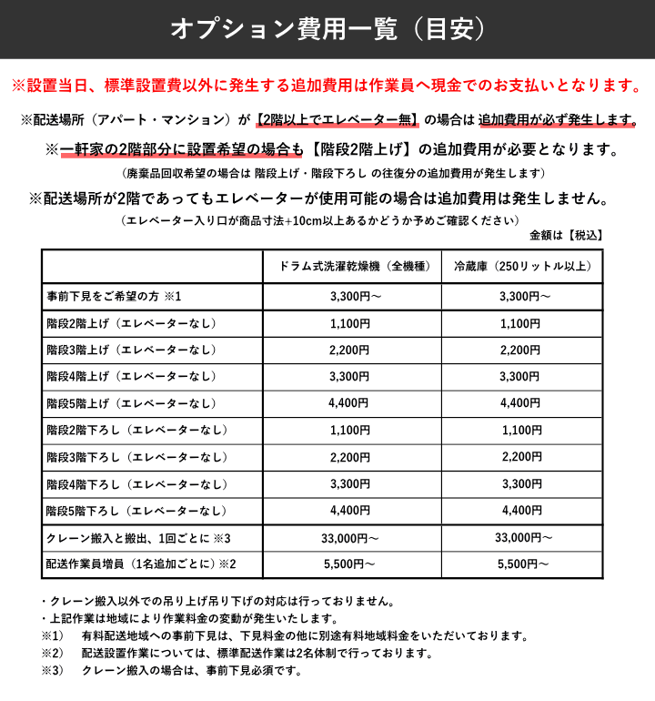 ・収集運搬費(2200円 税込)は配送日当日に配達員へ現金でお支払ください。