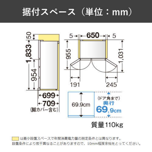 幅650x高さ1833x奥行650(脚カバー含む:660) mm