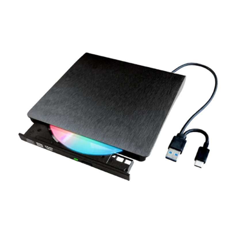 DVDドライブ本体、USBケーブル Type-A/Type-C(本体裏面に収納)