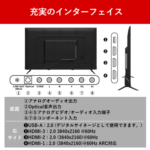 JAPANNEXT JN-V500UHDR-U 50インチ 4K対応液晶モニター VAパネル 送料無料(沖縄県・離島配送不可)