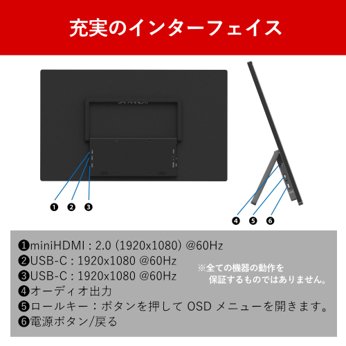 miniHDMIポート(2.0 (1920x1080) @60Hz)×1