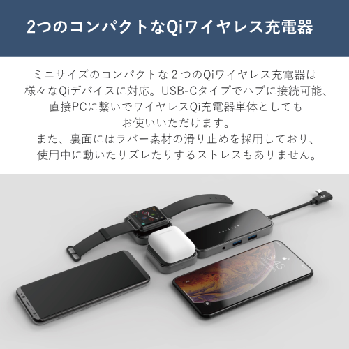 【重さ : ハブ】約89 g、ワイヤレス充電器:約50 g