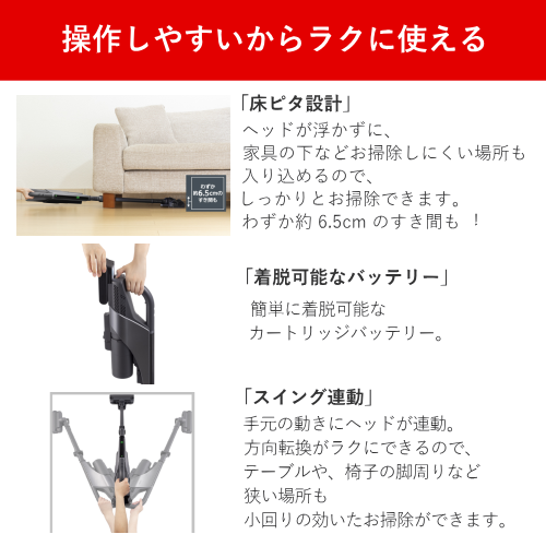 床ピタ設計:家具のすき間までヘッドが入り込める