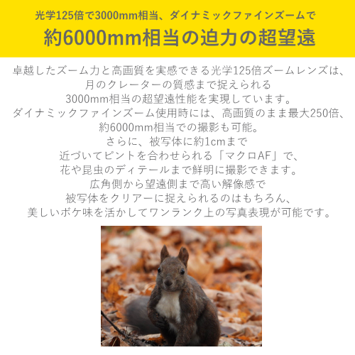【ダイナミックファインズーム】最大2倍(35mm判換算で約6000mm相当)